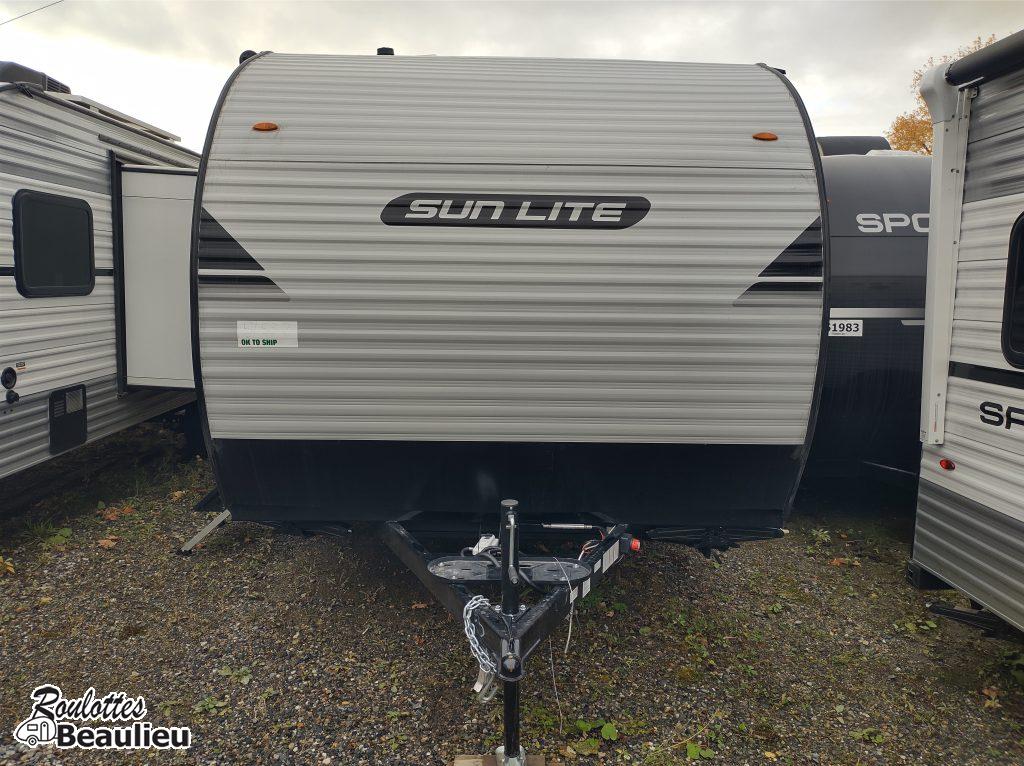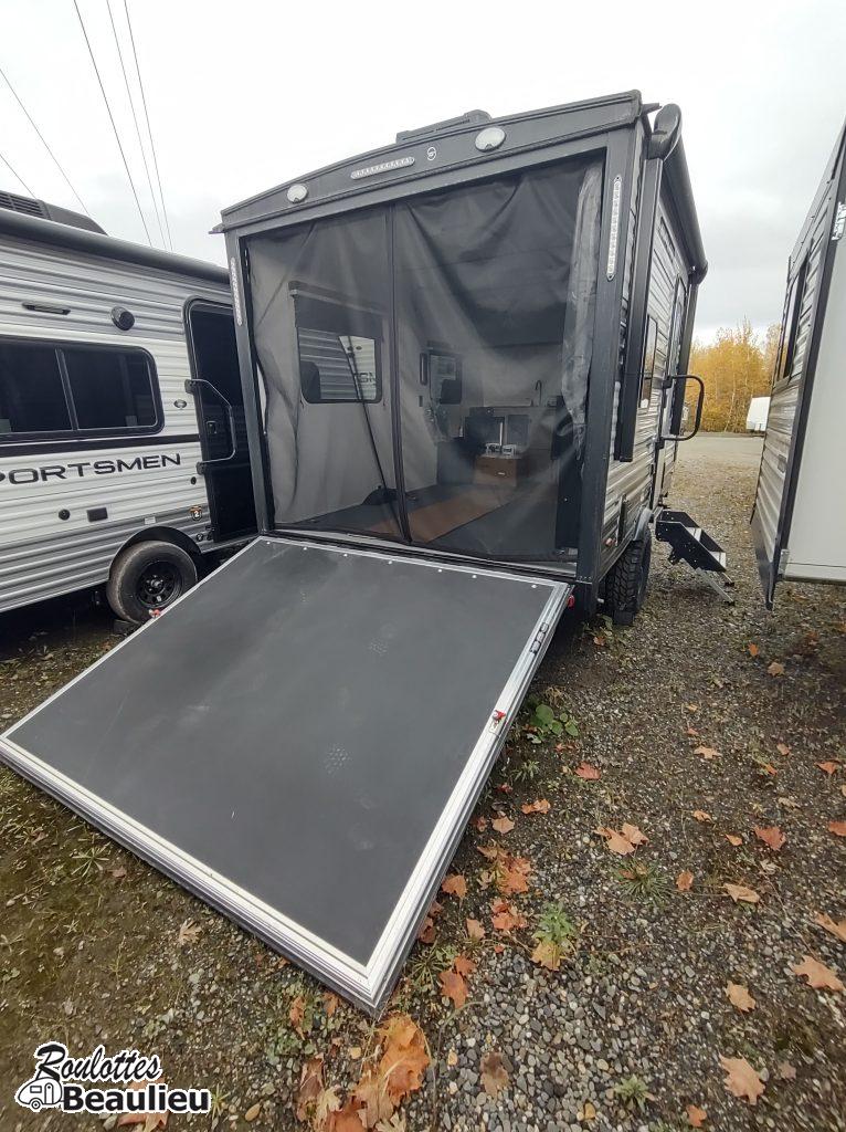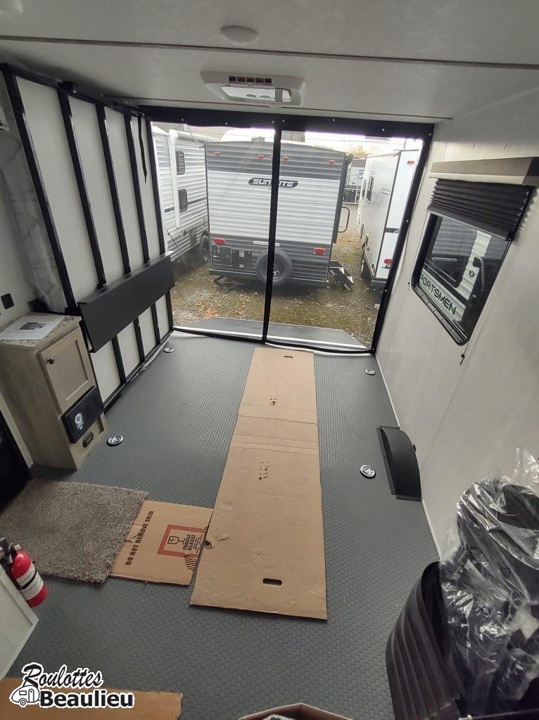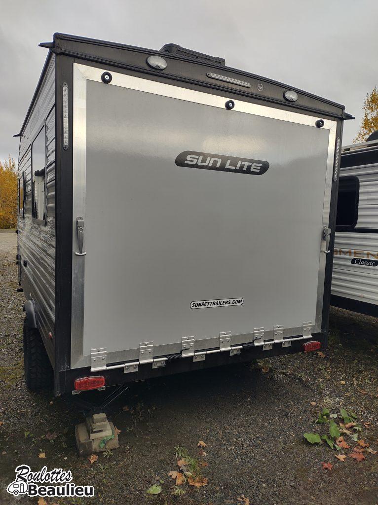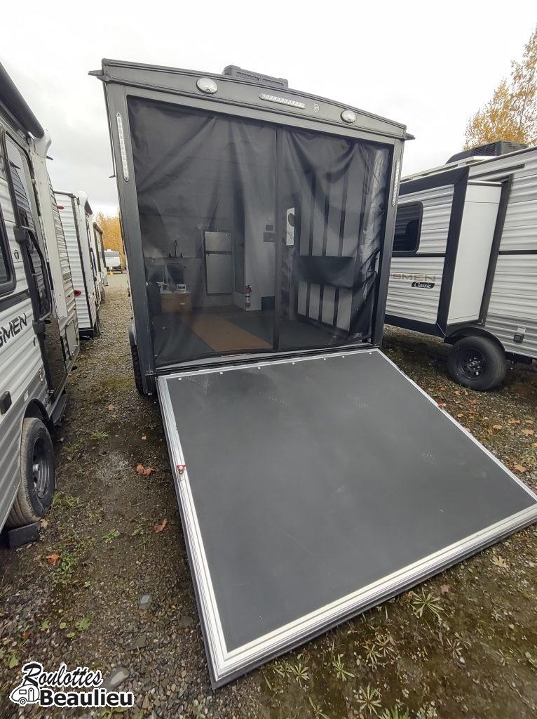 Roulotte Cargo légère de 2630lbs...2026 SunLite Sport 14th...avec une capacité de chargement de 1755lbs...parfait pour moto, motocross, vélo, vos jouets favori et plus. Toutes équipée avec grand frigo 12 volts, panneau solaire 190 watts, toilette, black tank flush, a/c, chauffage, douche intérieur & extérieur, lit double, auvent électrique, fini de plancher cargo avec attaches, beaucoup de rangement et +++ Venez la visitez chez Roulottes Beaulieu Sherbrooke.