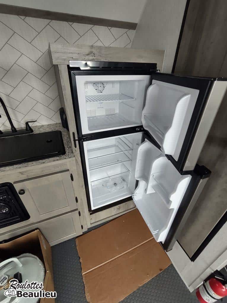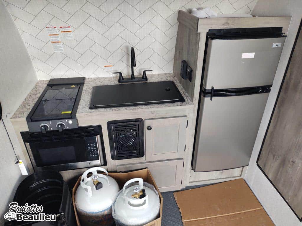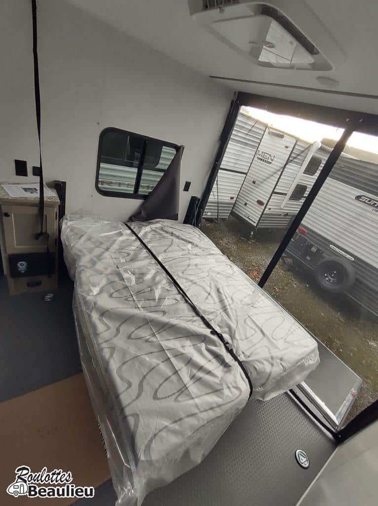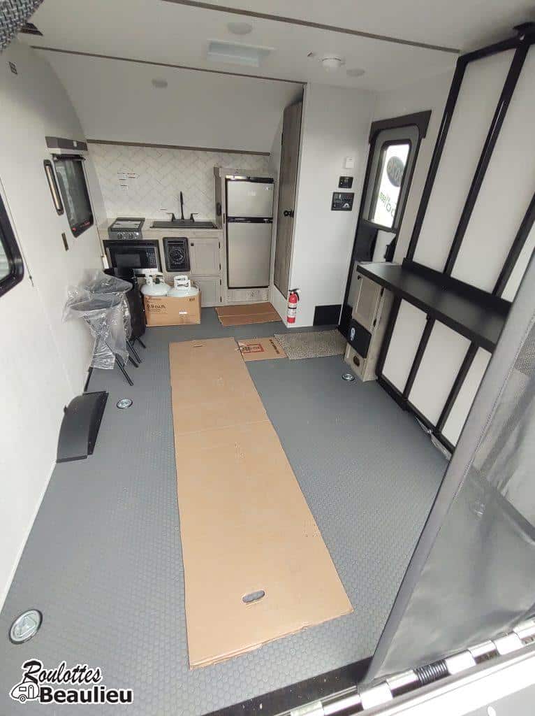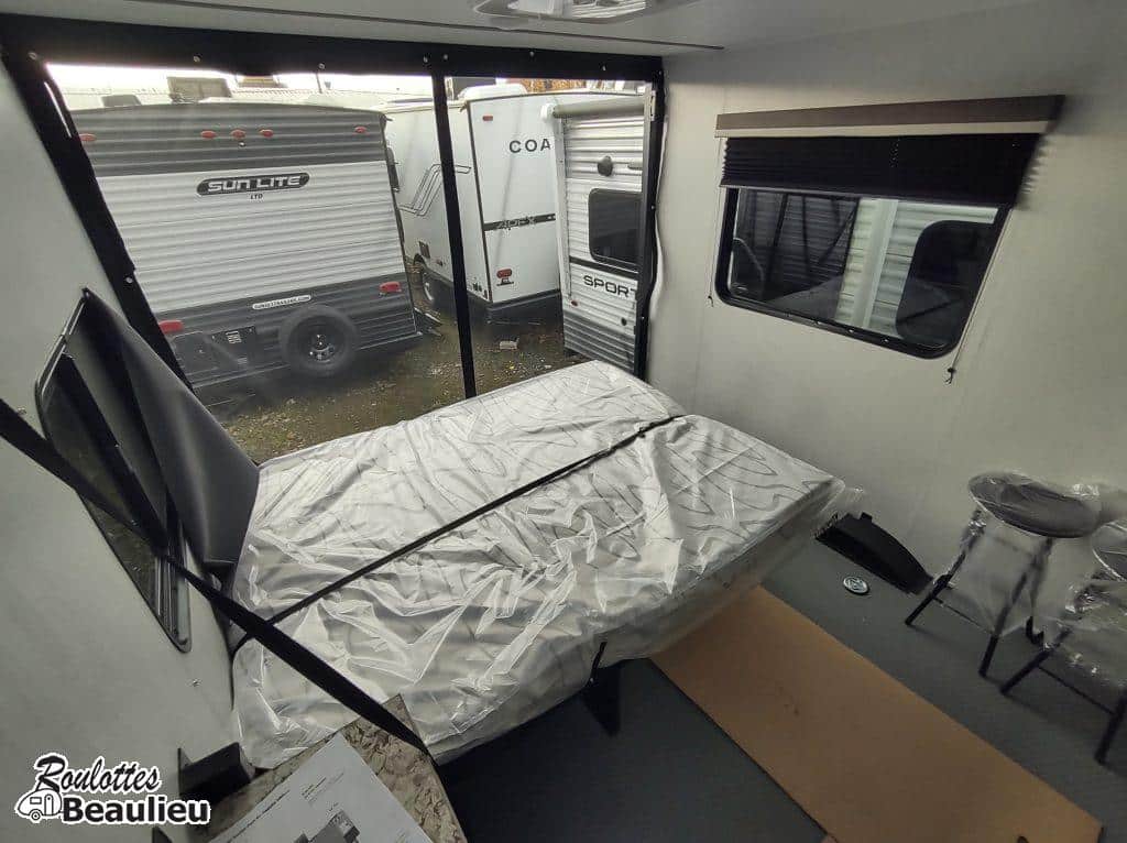Roulotte Cargo légère de 2630lbs...2026 SunLite Sport 14th...avec une capacité de chargement de 1755lbs...parfait pour moto, motocross, vélo, vos jouets favori et plus. Toutes équipée avec grand frigo 12 volts, panneau solaire 190 watts, toilette, black tank flush, a/c, chauffage, douche intérieur & extérieur, lit double, auvent électrique, fini de plancher cargo avec attaches, beaucoup de rangement et +++ Venez la visitez chez Roulottes Beaulieu Sherbrooke.