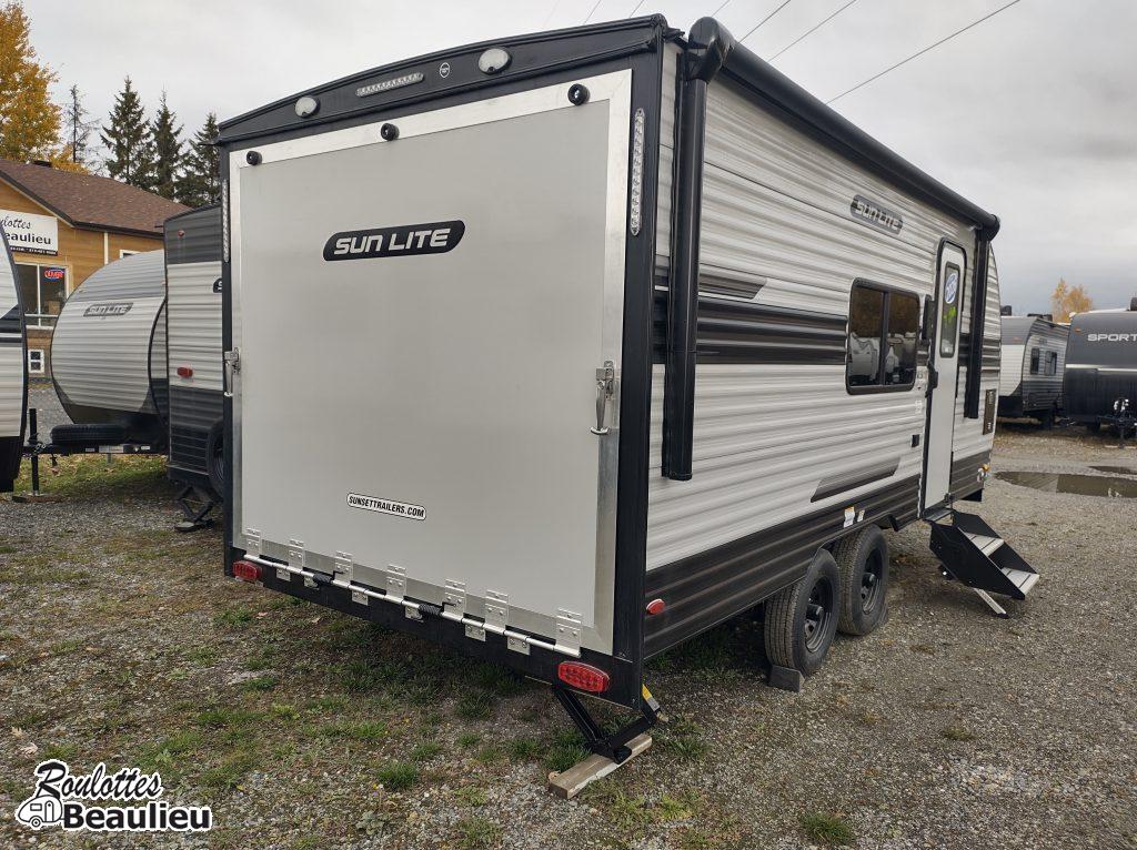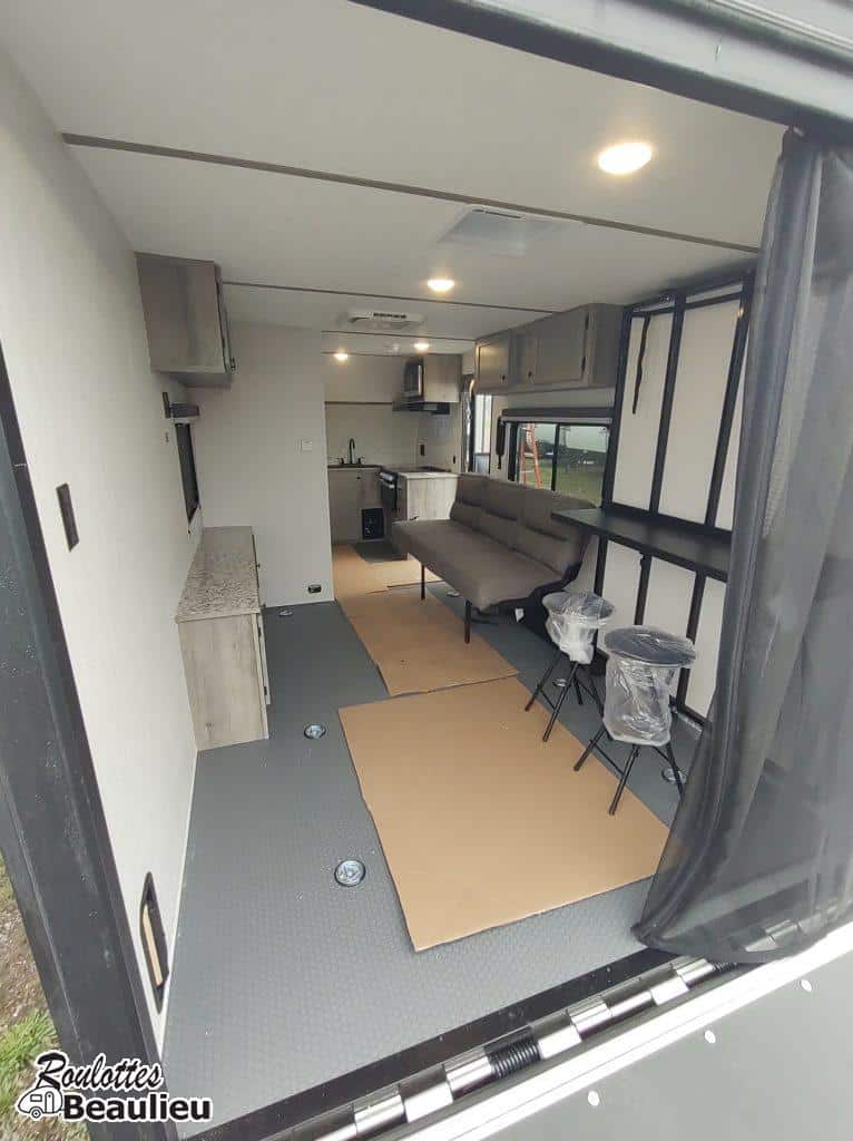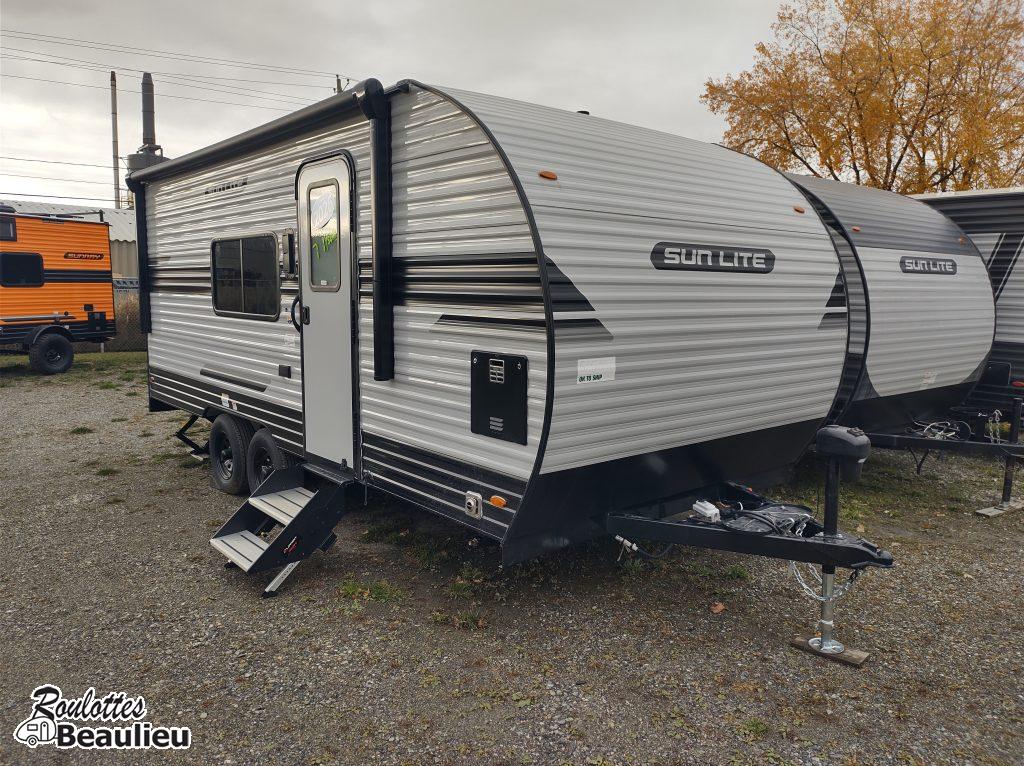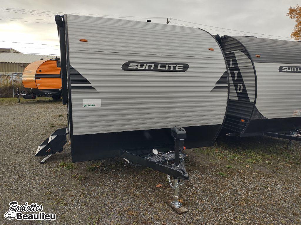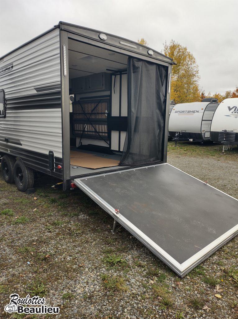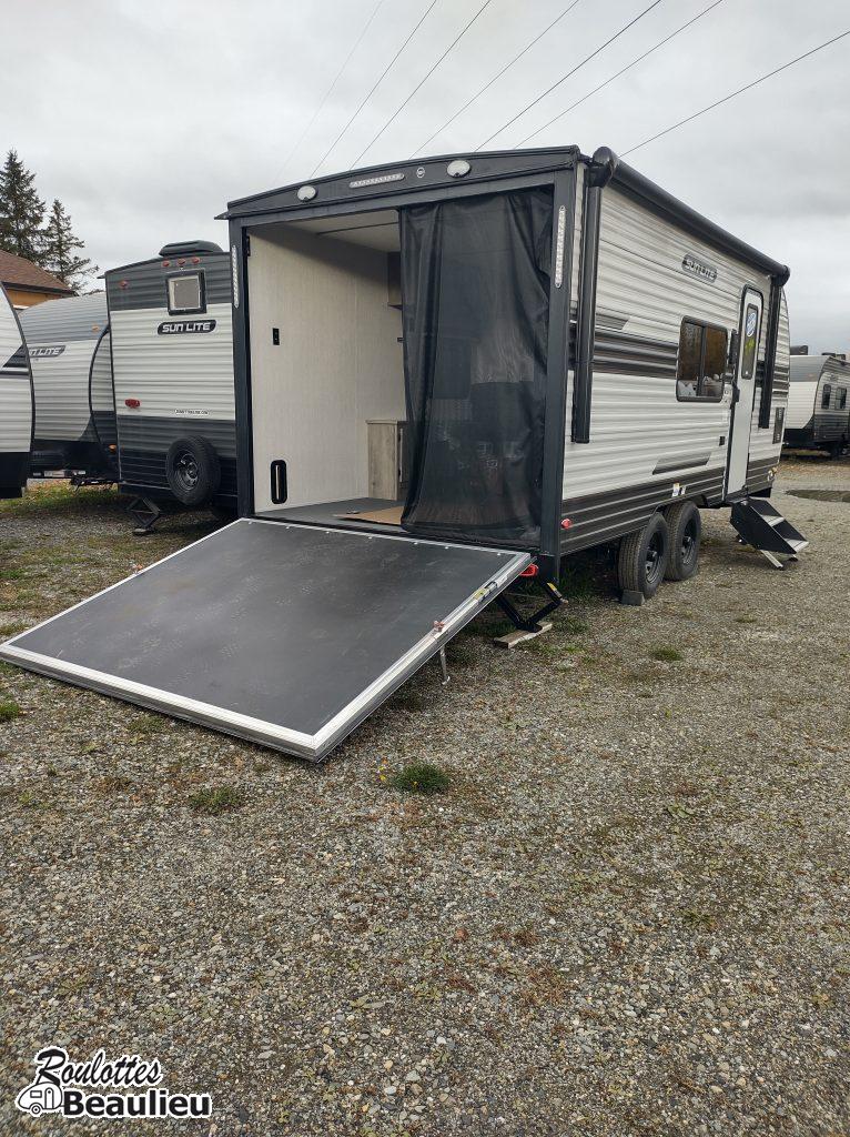 Roulotte Cargo de 3690lbs...2026 SunLite Sport 21th...avec une capacité de chargement de 4770lbs...parfait pour moto, motocross, Vtt, vélo, vos jouets favori et plus. Toutes équipée avec grand frigo propane & électrique, sofa, panneau solaire 190 watts, toilette, black tank flush, a/c, chauffage, douche intérieur & extérieur, lit double, auvent électrique, beaucoup de rangement et +++ Venez la visitez chez Roulottes Beaulieu Sherbrooke.