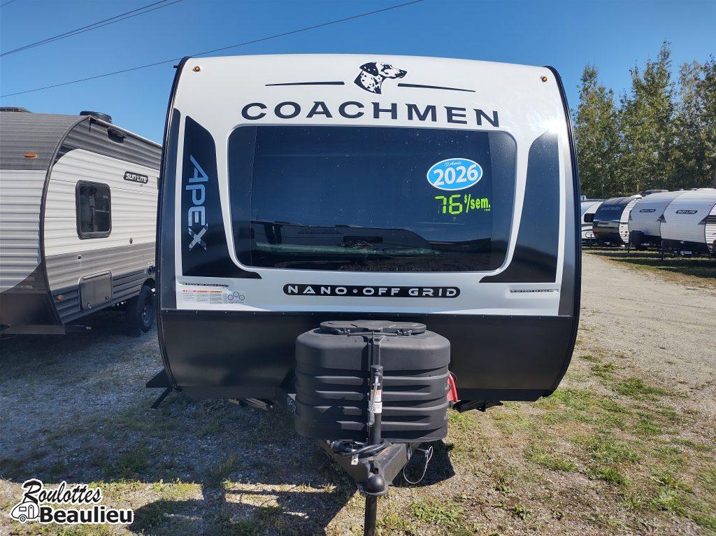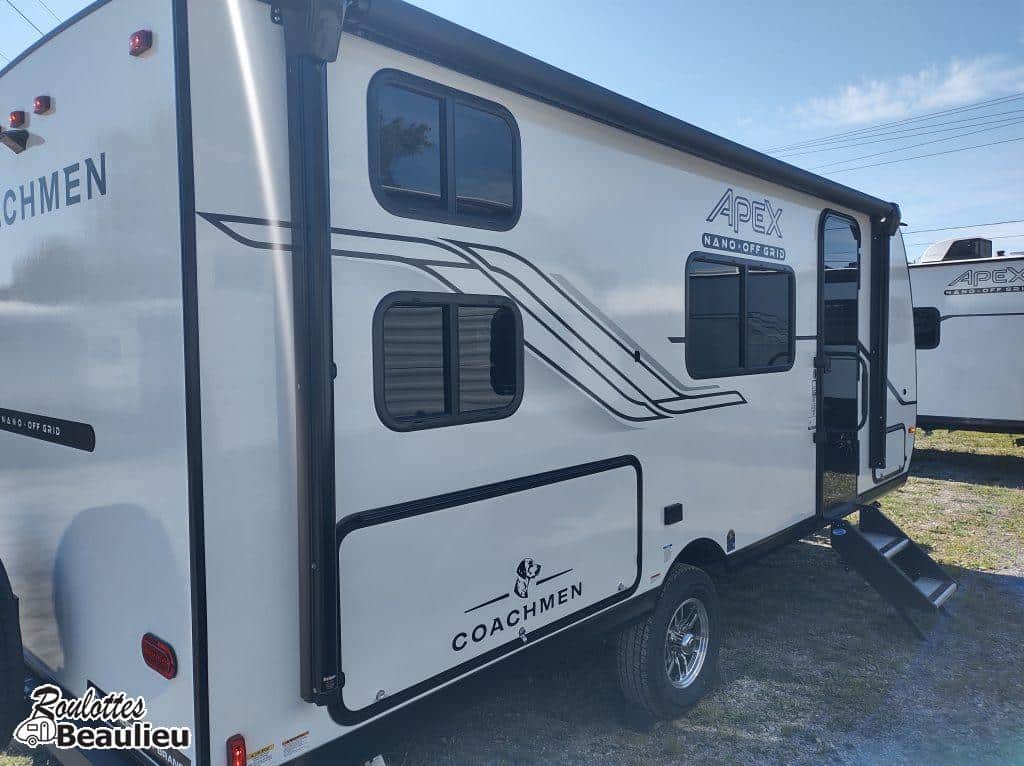 *NOUVEL ARRIVAGE* COACHMEN APEX 186BH 2026 AVEC STARGAZER ET LIT MURPHY/ Réservez vôtre unité maintenant! 2026 Apex Nano 186bh avec nouveau décor intérieur, roulotte familiale de qualité supérieur avec mur en Azdel (anti-moisissure), panneau solaire double de 400watts total, avec l'option STARGAZER (toit ouvrant) et lit murphy, grand frigo, micro-onde ''Air Fryer'', beaucoup de luminosité et de rangement, peut coucher jusqu'a 6 confortablement. La roulotte parfaite pour les familles qui aime voyager dans le confort et la qualité. Un produit de Coachmen qui construit des véhicules récréatifs depuis 1964.