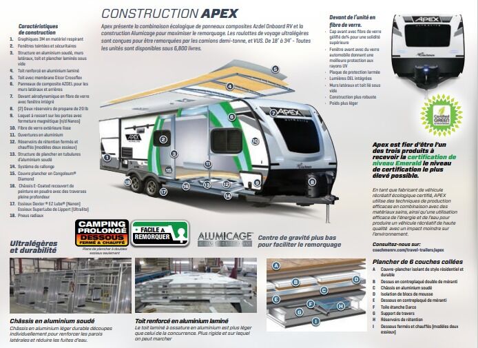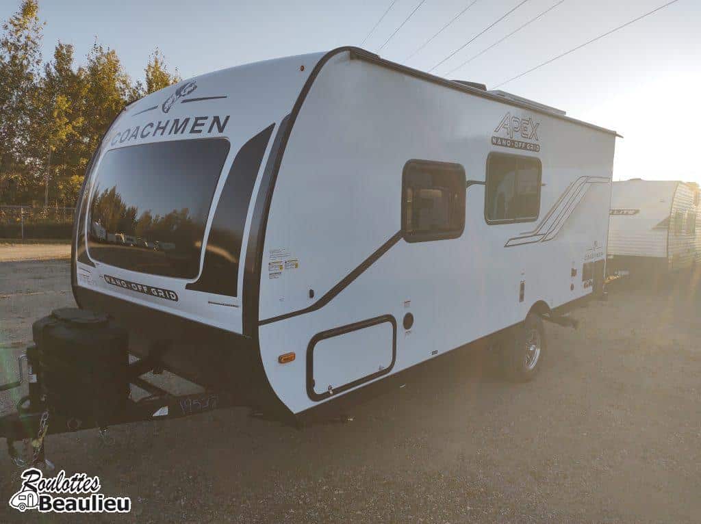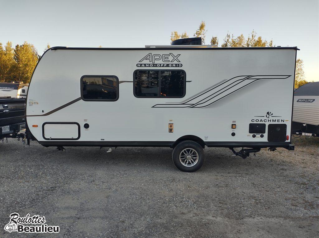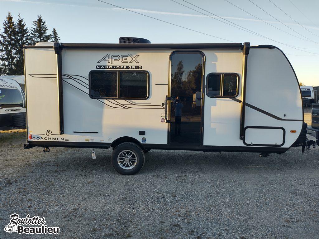 *NOUVEL ARRIVAGE/ RÉSERVEZ MAINTENANT VOTRE COACHMEN APEX NANO 187rb 2026* 2026 Apex Nano 187rb STARGAZER avec nouveau décor intérieur, roulotte de qualité supérieur avec mur en Azdel (anti moisissure), 400 watts de panneau solaire, avec une vrai table intérieur confortable pour 4 adultes, four micro-onde avec 'Air Fryer' , salle de bain complète avec beaucoup de rangement. Et un grand lit Queen pour du confort comme à la maison. La roulotte parfaite pour les couples qui aime voyager dans le confort et la qualité. Un produit de Coachmen qui construit des véhicules récréatifs depuis 1964. *Photos à titre indicatif certaines options et couleur différente peuvent y apparaitre.*