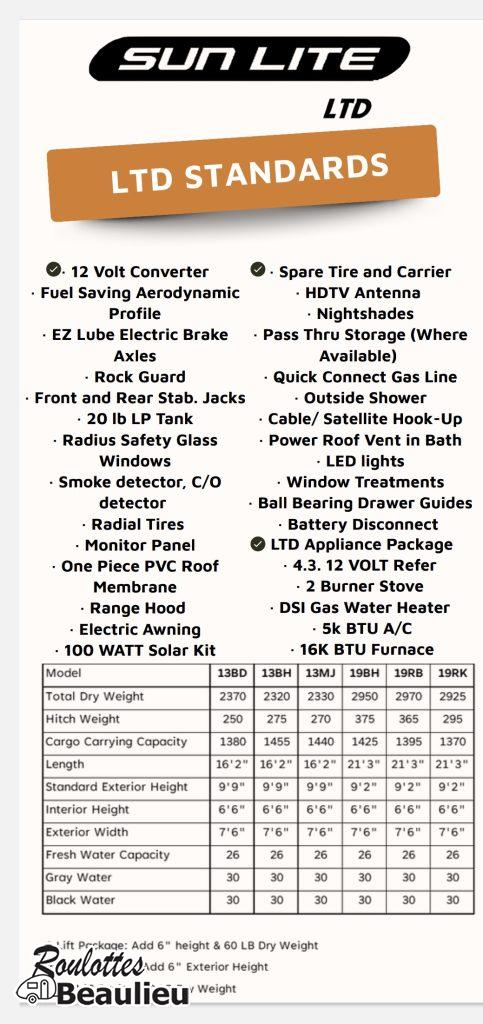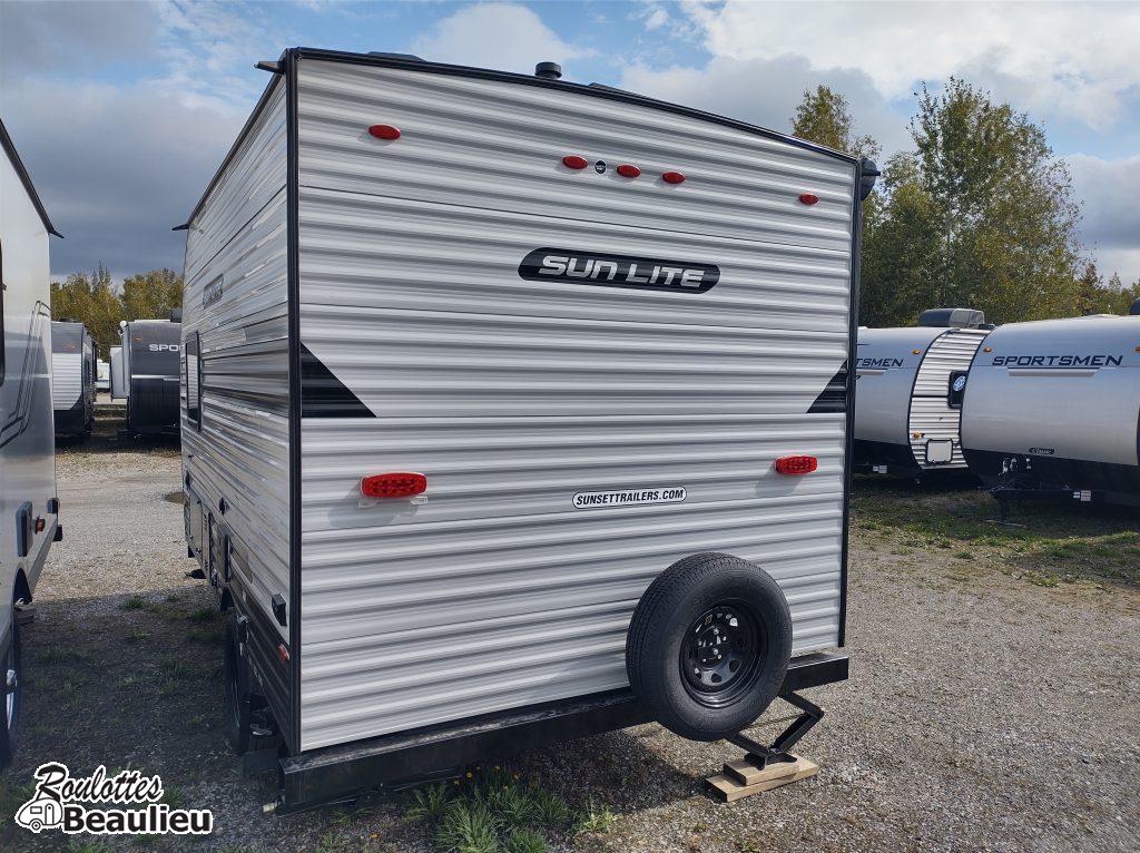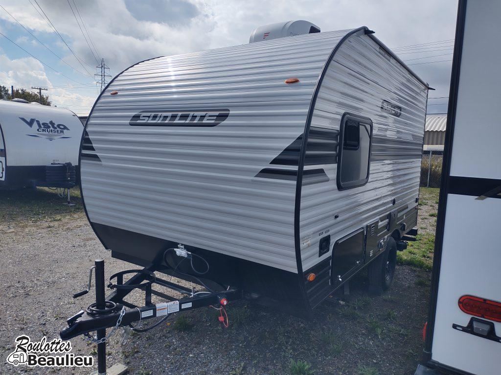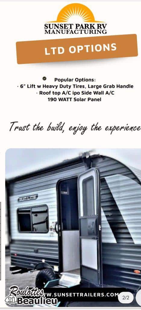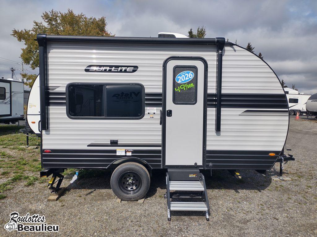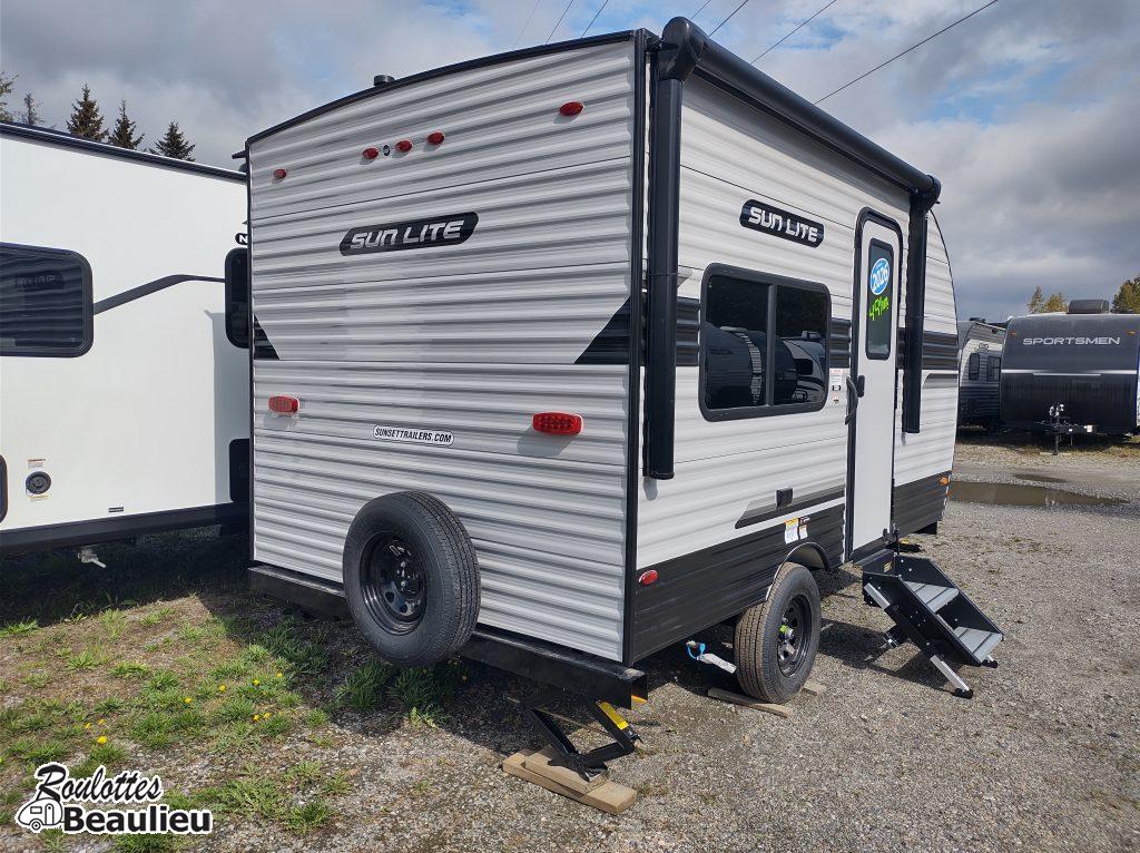 ***Nouvel arrivage *** Roulotte Sun Lite 13bd Ltd 2026 de Sunset Park Rv. Petite roulotte super bien équipée 2430lbs, avec panneau solaire 190 watts, cuisinière 2 ronds, four micro-onde, air climatisé au toit, évier double, toilette + douche, peut coucher 3 confortablement, avec auvent électrique, chauffe-eau, grand frigo et +++ Disponible maintenant chez Roulottes Beaulieu Sherbrooke.