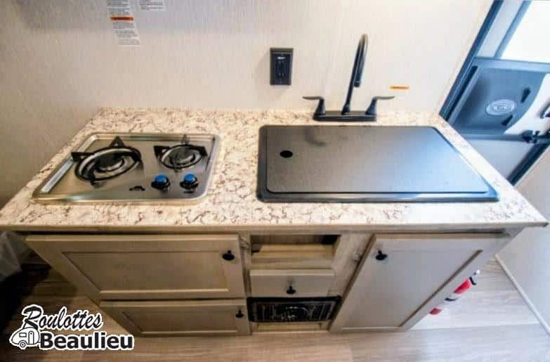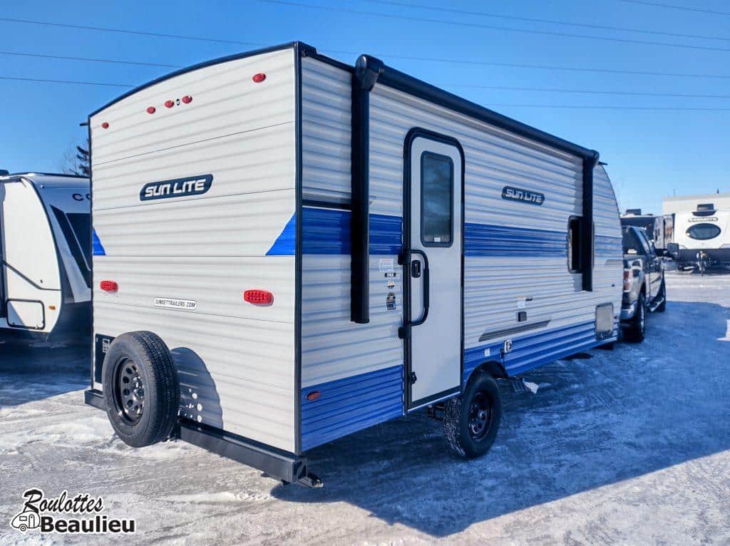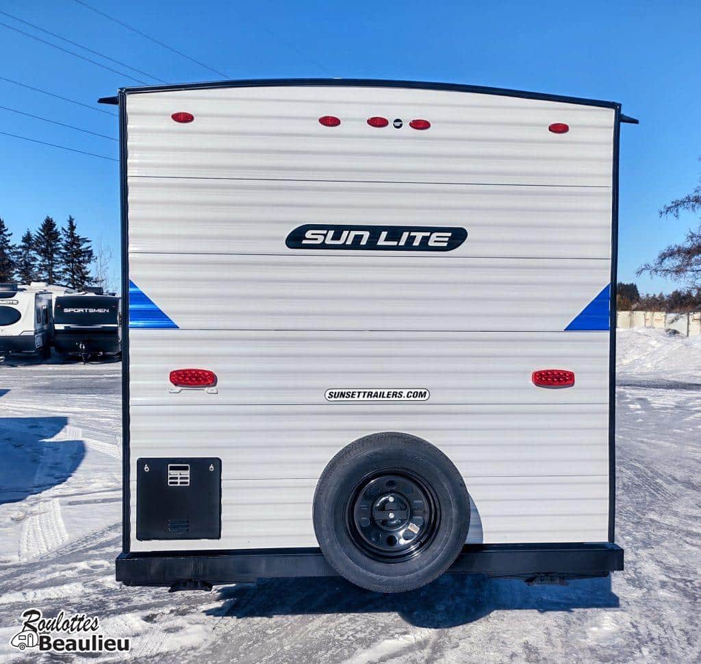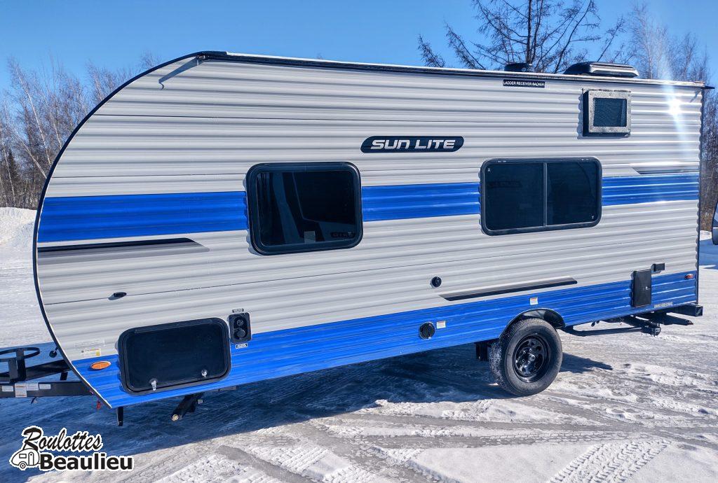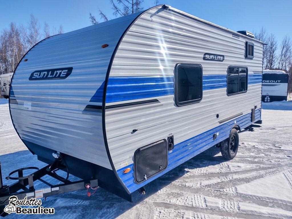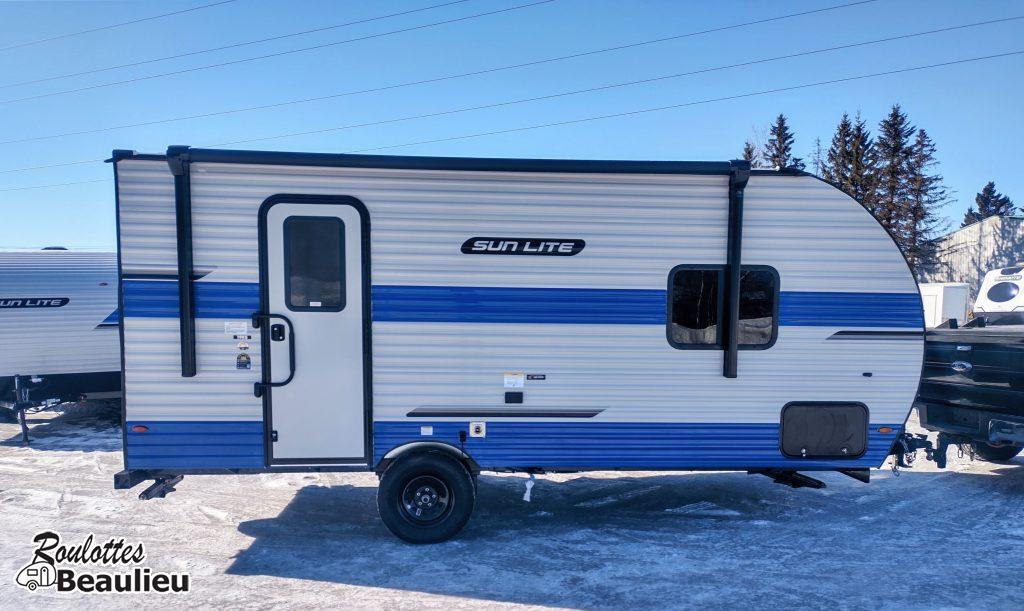 *Nouvel arrivage/ RÉSEVEZ VOTRE UNITÉ* Roulotte Sun Lite 19rb LTD 2026 de Sunset Park Rv. Petite roulotte de 2970 lbs super bien équipée avec cuisinière 2 ronds, évier double, toilette + douche, couche 3, avec auvents électrique, air climatisé, chauffe-eau, grand frigo, four micro-onde, douche extérieur, panneau solaire 190 watts, roues de 15" et +++ Disponible maintenant chez Roulottes Beaulieu Sherbrooke.