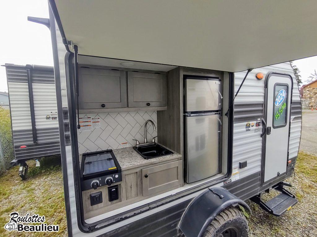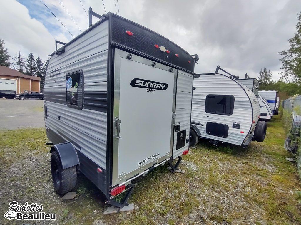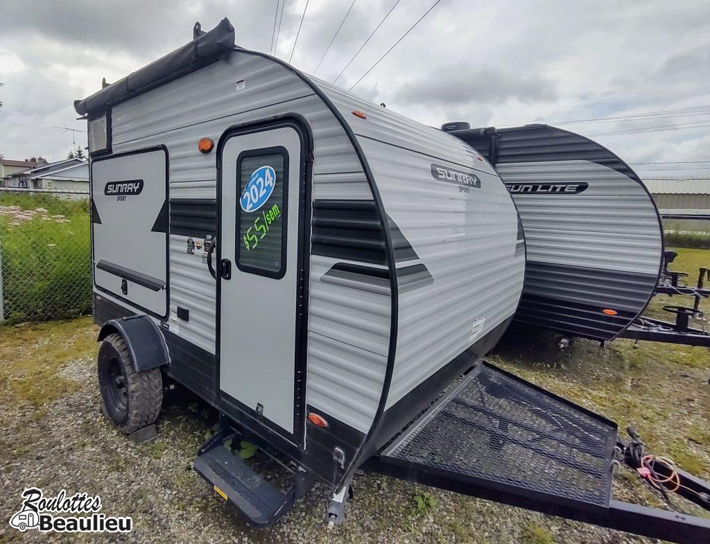Roulotte Cargo légère de 1980lbs...2024 SunRay Sport 139t...avec une capacité de chargement de 1370lbs...parfait pour moto, motocross, vélo, vos jouets favori et plus. Toutes équipée avec cuisine extérieure, grand frigo, panneau solaire 200 watts, toilette, a/c, chauffage, douche extérieur, lit double, auvent, rack de toit et beaucoup de rangement et +++ Venez la visitez chez Roulottes Beaulieu Sherbrooke.